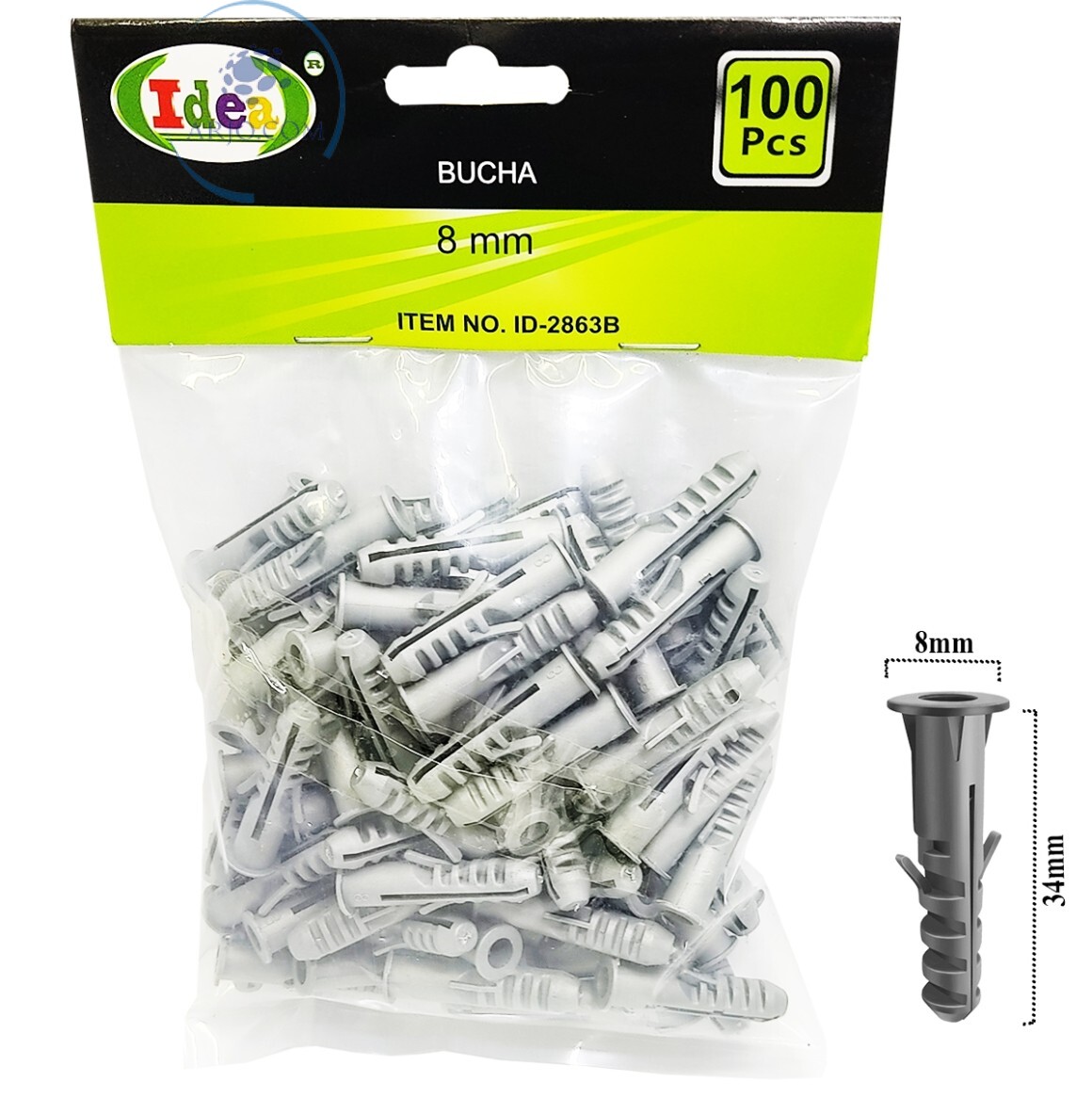 BUCHA DE FIXAÇÃO COM ANEL 8mm 100 UNIDADES (ID-2863B)
