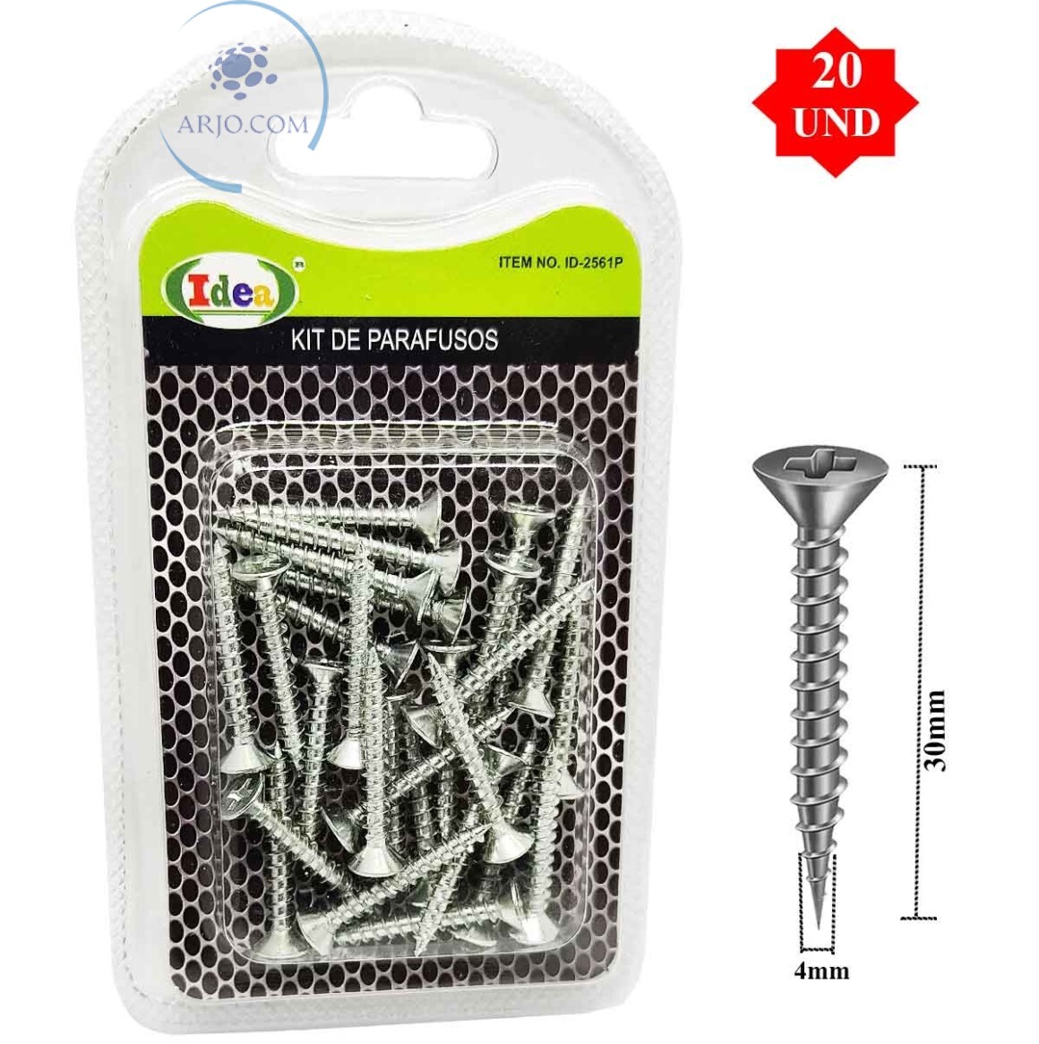 KIT DE PARAFUSO 20 UNIDADES 4mm X 30mm (ID-2561P)