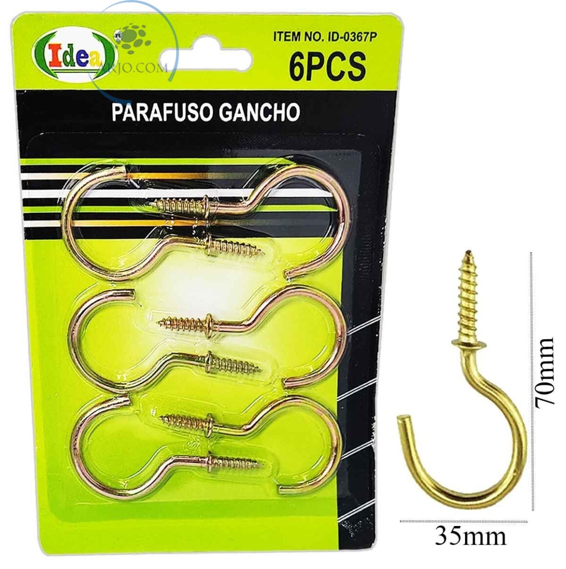 PARAFUSO GANCHO 6 UNIDADES 35mm X 70mm (ID-0367P)