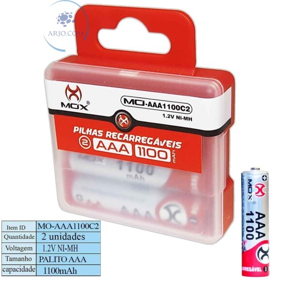PILHA RECARREGÁVEL AAA 1100mAh 2 UNIDADES (MO-AAA1100C2)