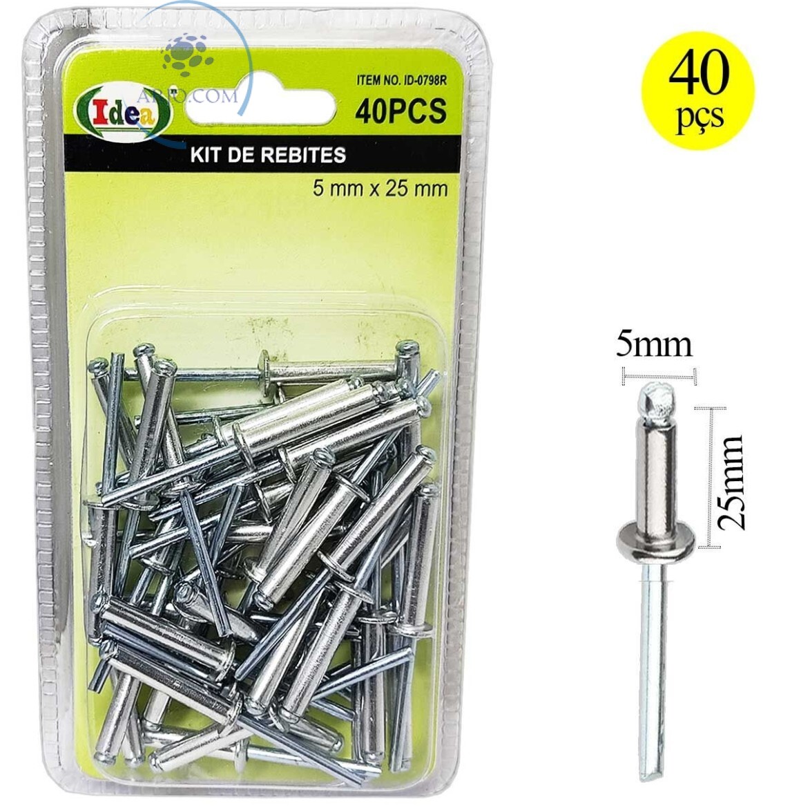 JOGO DE REBITES 40 PEÇAS 5mm X 25mm (ID-0798R)