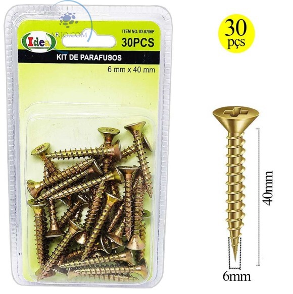 KIT DE PARAFUSOS 30 UNIDADES 6mm X 40mm (ID-0786P)