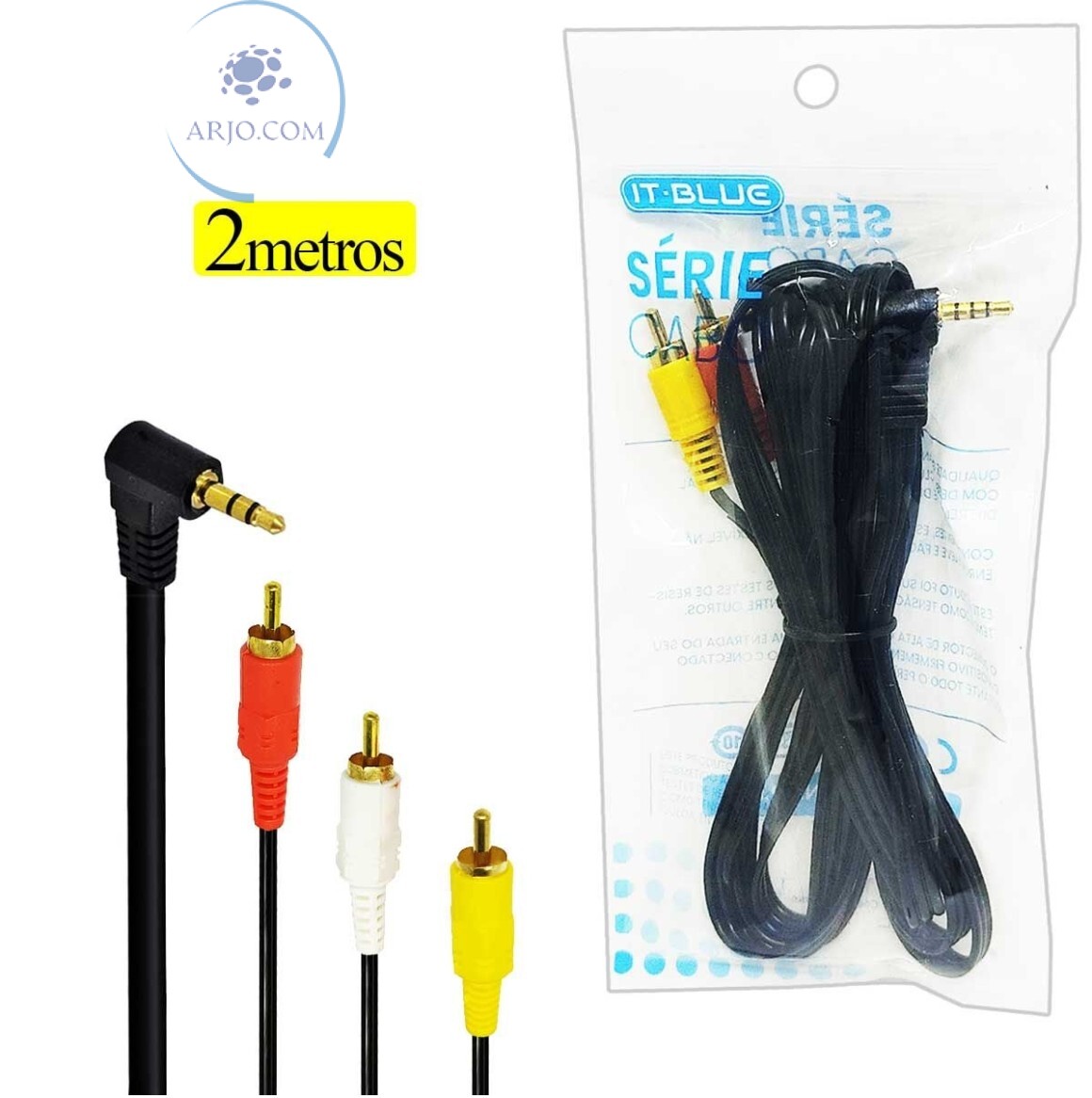 CABO AUXILIAR P2+3RCA 90 GRAUS ÁUDIO E VÍDEO 2 METROS (LE-1002)