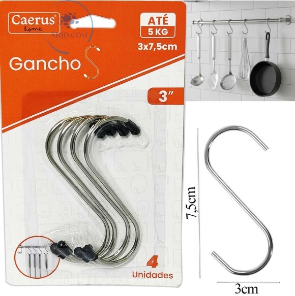 *OS GANCHOS TIPO "S" SÃO IDEAIS PARA APROVEITAR MELHOR O ESPAÇO NO ARMAZENAMENTO E ORGANIZAÇÃO DE UTENSÍLIOS.
