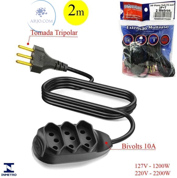 EXTENSÃO ELÉTRICA PRISMATEC TRIPLA DE 2 METROS