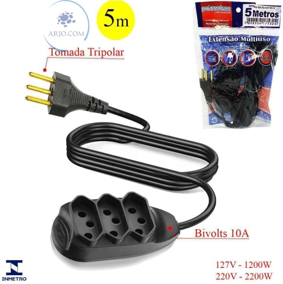 EXTENSÃO ELÉTRICA PRISMATEC TRIPLA DE 5 METROS