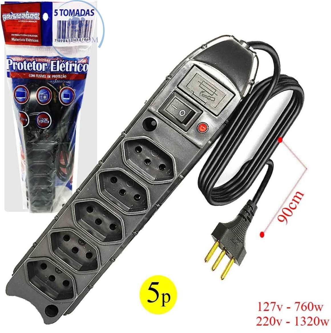 FILTRO DE LINHA PRISMATEC DE 05 TOMADAS TRIPLAS COM FUSÍVEL PROTETOR