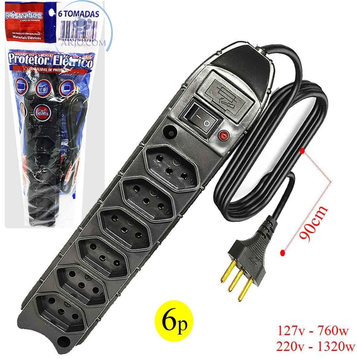 FILTRO DE LINHA PRISMATEC DE 06 TOMADAS TRIPLAS COM FUSÍVEL PROTETOR