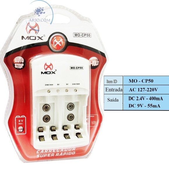 *POSSUI 4 CANAIS DE CARGA INDEPENDENTES, ONDE É POSSÍVEL CARREGAR APENAS 1 PILHA OU 1 BATERIA 9V;