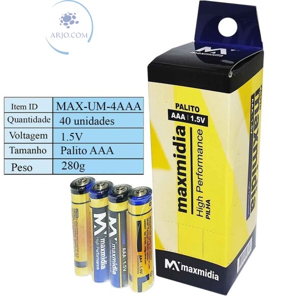 PILHA PALITO AAA COM 40 UNIDADES (MAX-UM-4AAA)
