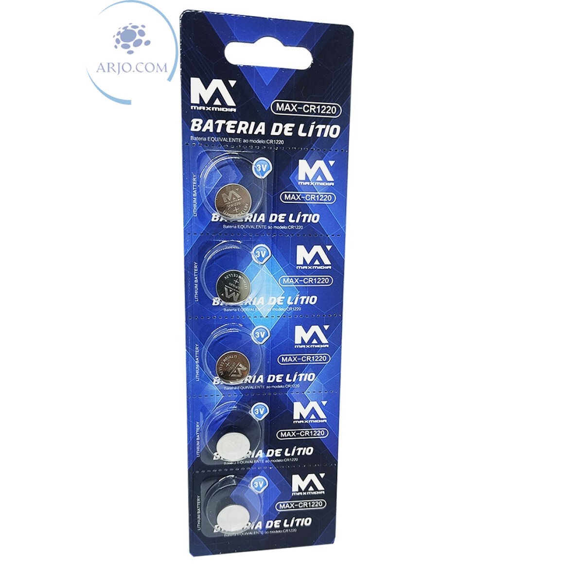 BATERIA CR1220 BOTÃO 3V CARTELA COM 5 UNIDADES (MAX-CR1220)